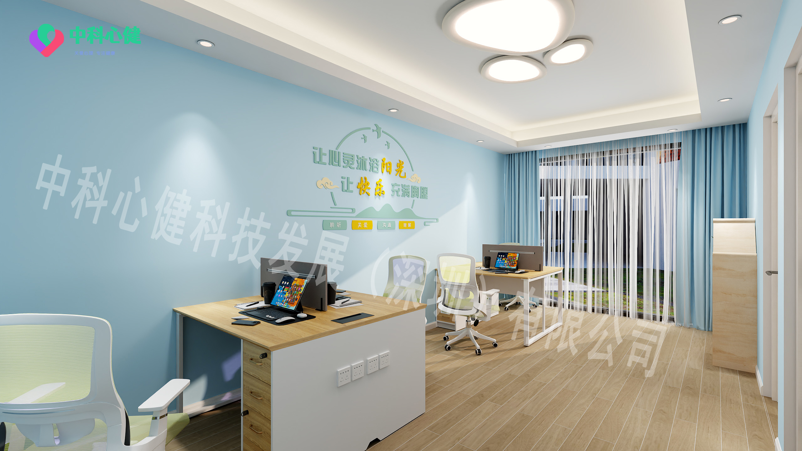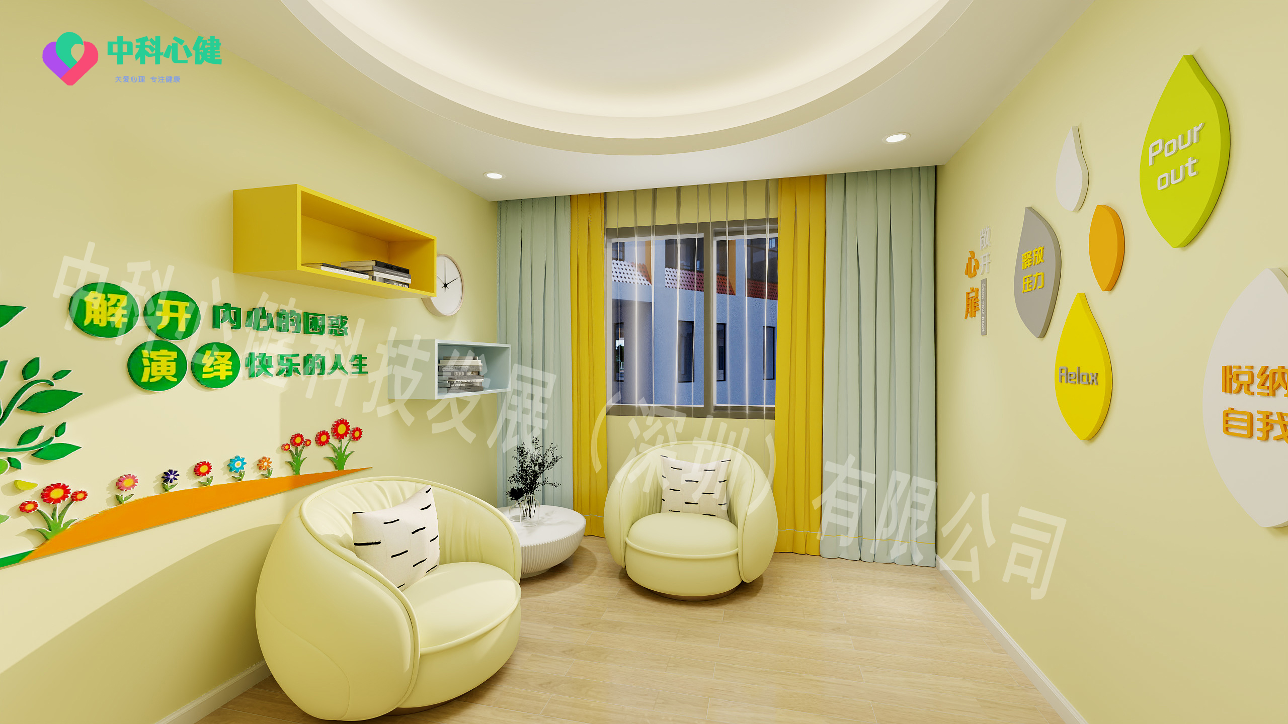 2.功能室装修风格应采用温馨的色调,烘托温暖的氛围,更利于来访者获得正向心理能力,矫正不良认知观念